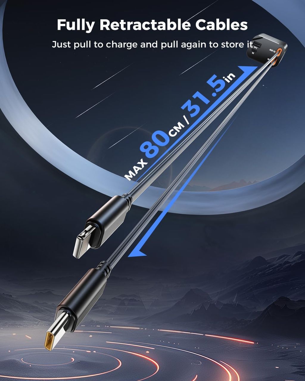 Cansado de cabos bagunçados no carro? Nosso Carregador de Carro Retrátil possui dois cabos extensíveis de 80cm, garantindo armazenamento fácil e mantendo seu carro organizado. Diga adeus aos fios emaranhados! Um presente perfeito para homens e mulheres que valorizam praticidade e organização.